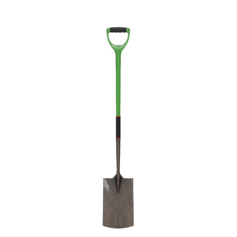 This square digging shovel is designed for precise ground work and trenching tasks. The flat blade shape allows clean cutting of soil edges and straight digging lines. It is suitable for landscaping and construction work.
