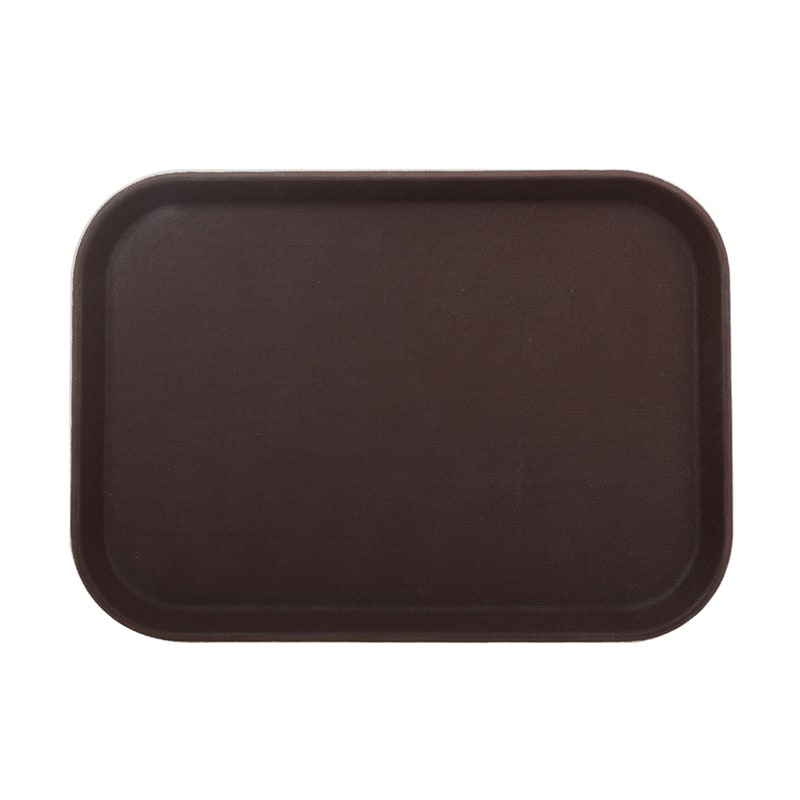 Compact rectangular tray in coffee color, ideal for drinks and light meal service.